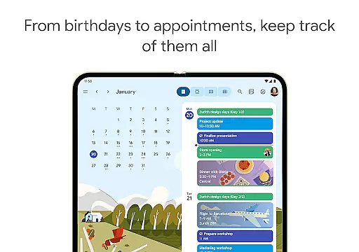 Google Calendar is the official calendar app designed for Android phones, tablets, and Wear OS devices, helping users stay organized and make the most of their day. With features like easy event creation, multiple calendar integration, customizable views, widgets, tasks, and more, it ensures comprehensive planning.