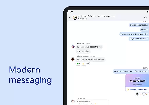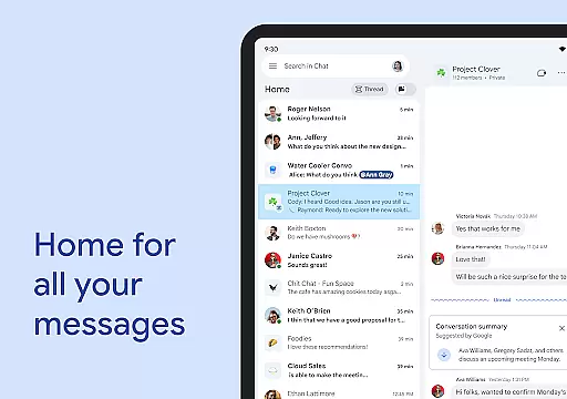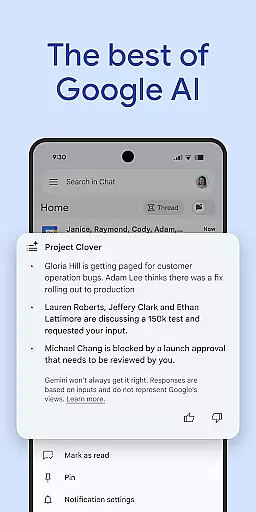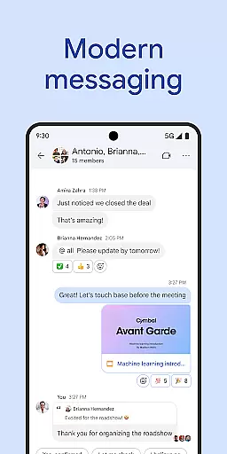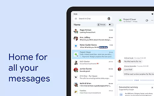 Google Chat distinguishes itself through its innovative AI capabilities and robust integration features. The application's AI-powered functionalities include automatic message translation, intelligent conversation summaries, and advanced search features that help users quickly find relevant information.