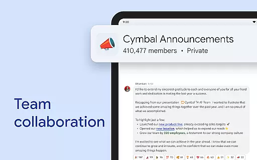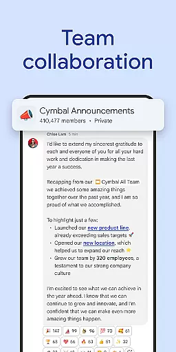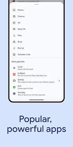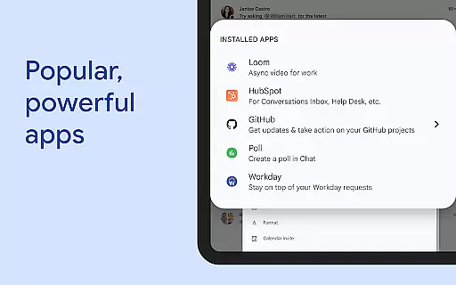 The application provides comprehensive team management features including status updates, audio/video messages, and real-time huddles. Integrated seamlessly with other Workspace apps like Gmail, Calendar, and Drive, it creates a unified productivity ecosystem that streamlines teamwork through smart chips and integrated workflows.