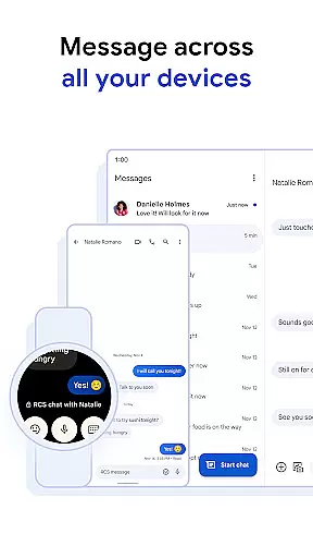 The app also supports cross-device functionality, enabling users to start conversations on their phone and continue them on a tablet or computer. Available on Wear OS, Google Messages ensures that you stay connected no matter where you are. Whether you're looking to personalize your chats or enjoy advanced spam protection, this app provides a comprehensive solution for modern messaging needs.