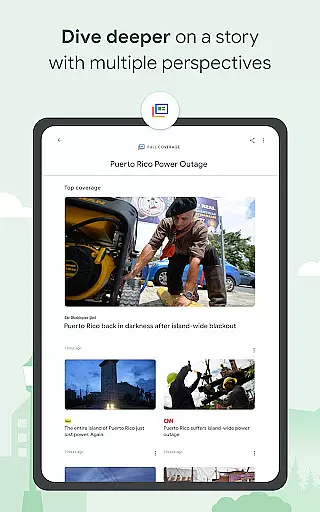 Local News allows users to engage with stories from their community through articles from nearby news outlets. Users can customize multiple locations to stay informed about different areas. The Full Coverage feature provides diverse perspectives on stories, organizing content from various sources and mediums for a holistic view.