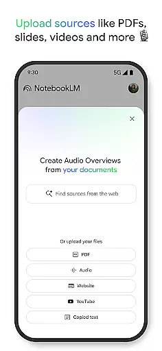 The app allows users to upload various sources such as PDFs, websites, and videos, turning them into structured notebooks. This feature simplifies the task of managing extensive research or project materials by consolidating them into easily navigable formats.
