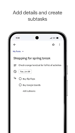 Google Tasks is a productivity app designed to help users manage their daily tasks efficiently. The app allows you to capture, organize, and track your to-do lists from any location and at any time. With seamless synchronization across all devices, Google Tasks ensures that your lists are always up-to-date whether you're on your phone, tablet, or computer.