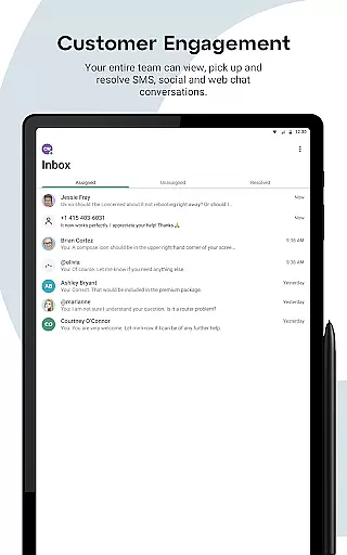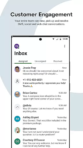 The app also supports multi-channel communication through SMS, Webchat, and Social Media channels, consolidating all interactions into a single platform. This consolidation allows users to engage with customers and colleagues more effectively, streamlining workflows and ensuring timely responses to inquiries.