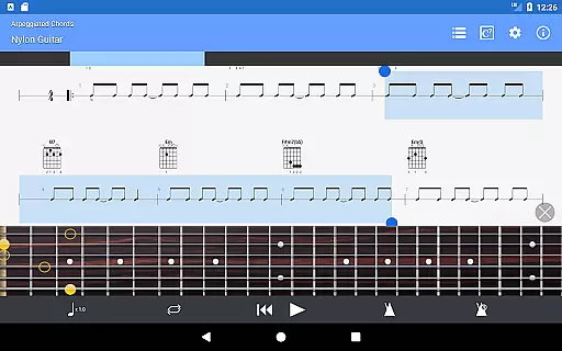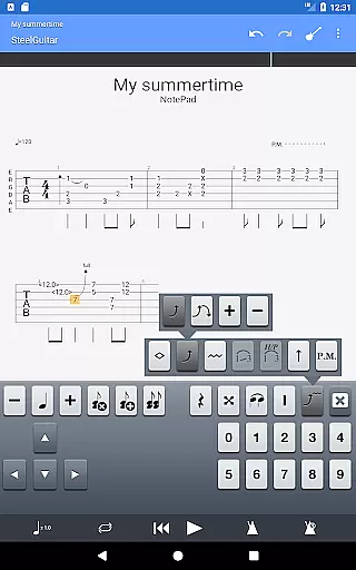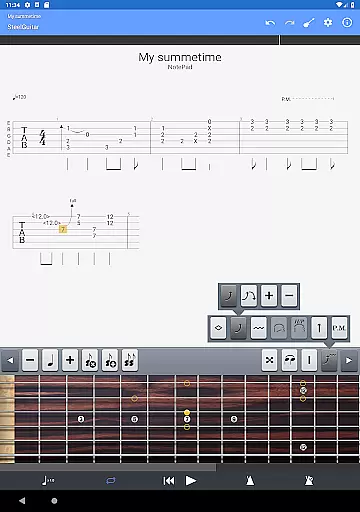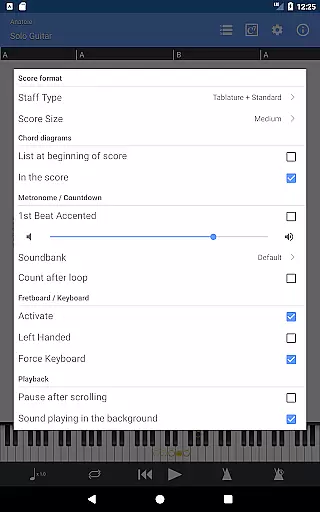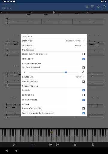 The NotePad tool is another key feature, offering the ability to edit single-track tablatures for various stringed instruments. Users can customize tunings and tempo while taking advantage of 19 built-in sounds to experiment with different musical styles. Additionally, the app includes practical tools like a metronome, visual countdown, and fretboard display for both right- and left-handed players, enhancing the overall user experience.