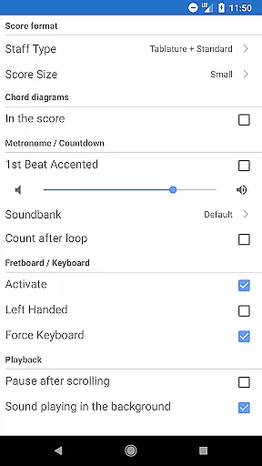 One of the standout features is the NotePad tool, which allows users to compose single-track tablatures for various stringed instruments like guitar, bass, banjo, ukulele, and mandolin. With customizable tuning, tempo settings, and 19 built-in sounds, musicians can quickly capture their musical ideas and export them into Guitar Pro desktop formats for further refinement. This makes the app not only a practice companion but also a creative workspace for developing new compositions.