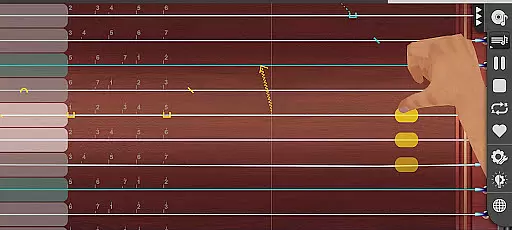Guzheng Master stands out with its extensive range of features designed to replicate the nuances of playing a real Guzheng. The app includes a full 21-string layout, supporting right-hand techniques such as plucking, glissando, tremolo, and overtone production. For left-hand techniques, it offers pitch slides, small and big vibratos, and the unique 'Dian Yin' effect, which adds expressive sound variations when tapping the pitch slider after plucking a string.