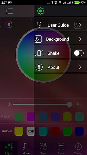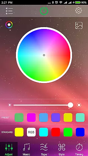 The app's functionality extends to adjusting colors based on music, providing dynamic and responsive lighting that can enhance any atmosphere. This feature is particularly useful for parties or relaxation sessions where the ambiance plays a crucial role in the overall experience.