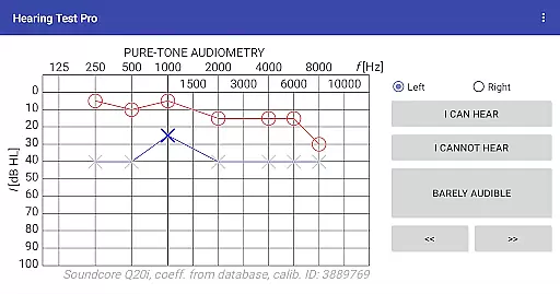 Hearing Test Pro stands out with its diverse range of specialized features tailored to deliver precise and reliable hearing evaluations. One of its key offerings is pure-tone audiometry, which uses bundled headphones and predefined calibration coefficients from an extensive database to determine the quietest sounds a user can hear at various frequencies. This feature not only helps identify the extent of hearing loss but also allows for personalized adjustments through manual calibration controls available in the Pro version.