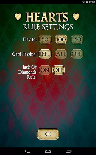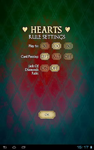 Hearts Pro stands out with its rich feature set tailored for card game enthusiasts. The app includes full Hearts gameplay with optional Jack of Diamonds rule and various card passing options such as Left, Right, Across, and No Pass. Players can compete against 18 unique CPU opponents ranging from beginner to expert level.