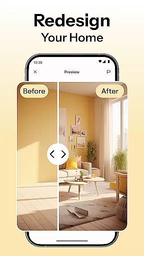 Another key feature is the Smart Furniture Layout Planner, which uses AI algorithms to recommend optimal arrangements for furniture, lighting, and decorative elements. This ensures efficient use of space while maintaining aesthetic appeal. Users can also explore endless decor combinations with the Home Decor Ideas & Style Filters, testing out new wall colors, flooring options, and trendy furniture sets. Finally, the Before & After Comparison function lets users evaluate their current space against AI-generated designs side by side, making it easier to decide on the best approach for their projects.