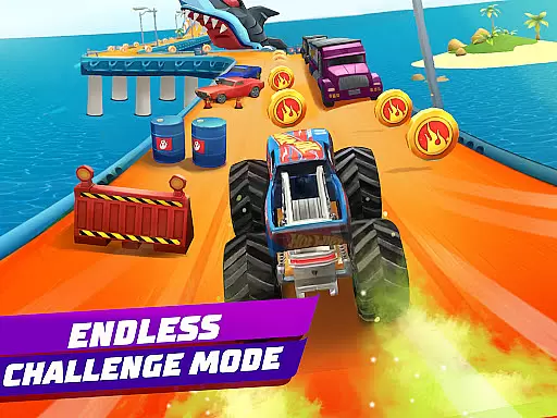 The game includes a robust collection system where players can gather iconic Hot Wheels™ cars and Monster Trucks. Each vehicle comes with unique attributes, encouraging players to strategize based on their chosen car's strengths. The competitive aspect is heightened by the multiplayer mode, allowing head-to-head races with friends. Power-ups like sticky oil and rocket boosts introduce tactical options during races, enhancing the overall excitement.