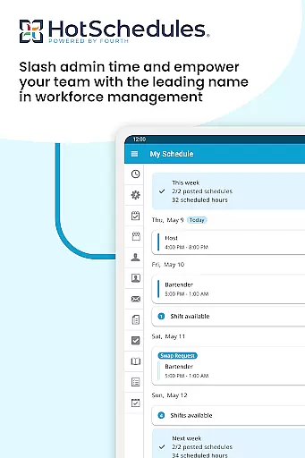 HotSchedules is a leading productivity app designed specifically for workforce management in businesses. The app's core functionality revolves around employee scheduling, enabling both team members and managers to efficiently manage work shifts. For employees, it offers one-click shift swapping, automatic shift pickups, and time-off requests, ensuring optimal work-life balance. Managers benefit from features like 75% faster schedule creation, one-click shift change approvals, and real-time business performance monitoring through sales and labor snapshots.