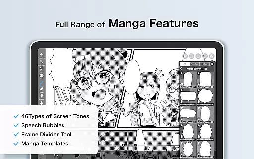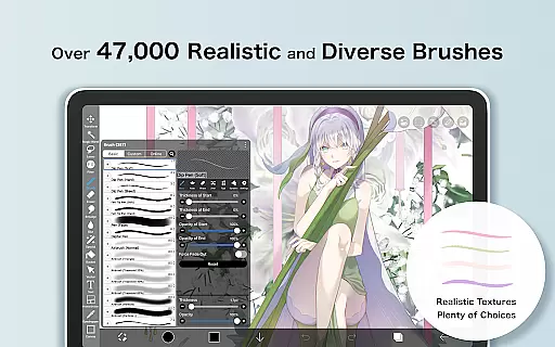 The app's functionality extends beyond just brushes. Users can access more than 2100 fonts and employ advanced text tool functions for manga creation or graphic design projects. With features like Vector tools, Animation, and AI Disturbance, creators have everything they need to bring their visions to life with precision and flair.
