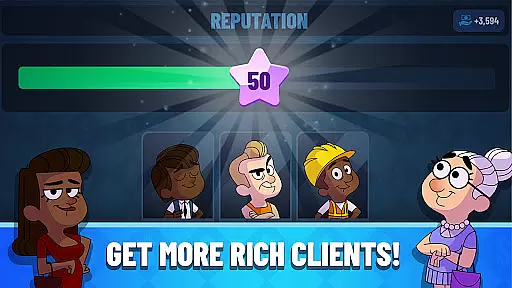 Another key feature is the ability to collect and upgrade managers, which not only boosts staff efficiency but also helps pass important audits, ensuring smooth operations. Growing reputation levels attract billionaire clients, adding another dimension to player progression. Additionally, choosing guards ensures the safety of accumulated capital, providing peace of mind while players are away from the game.