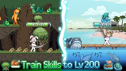 Character progression in IdleOn is both deep and rewarding. Players can level up 15 unique skills such as mining, smithing, alchemy, fishing, and woodcutting. This diverse skill set provides numerous ways to enhance character abilities and efficiency. Additionally, crafting over 120 unique equipment items like helmets, rings, and weapons further customizes each characteru2019s capabilities, allowing for strategic planning and optimization.