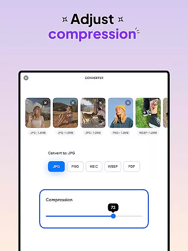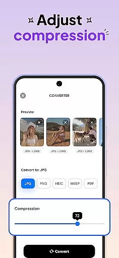 The application also offers photo compression capabilities, allowing users to adjust the compression level as needed. Whether you're a photographer managing high-resolution images or a student working on a project, Image Converter provides an intuitive interface that simplifies the conversion process. Its seamless integration with different photo sources makes it easy to import and export files across devices.
