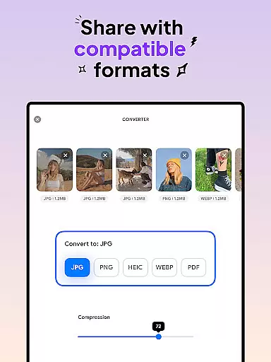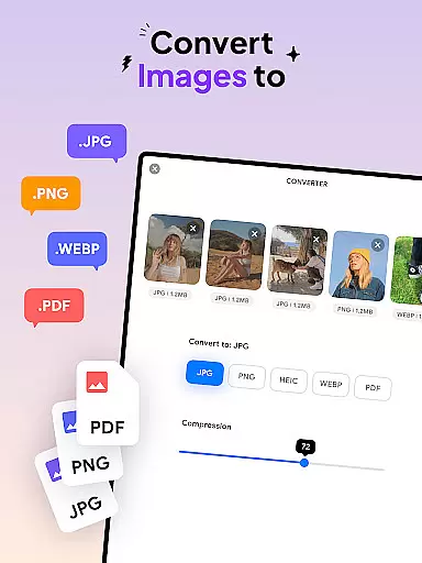 Image Converter - HEIC to JPG stands out with its comprehensive set of features tailored for efficient image processing. The app's batch conversion functionality enables users to convert multiple images at once, streamlining workflows and enhancing productivity. It supports nearly all image formats, including JPEG, PNG, HEIC, and PDF, ensuring compatibility with various file types.