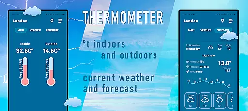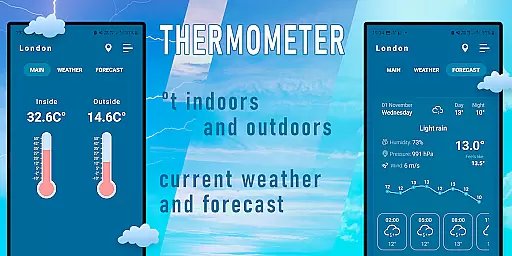 Indoor Thermometer is a specialized weather application that provides both indoor and outdoor temperature readings. The app utilizes your phone's built-in sensors and nearby weather stations to deliver accurate temperature data directly to your device screen. Whether you need to monitor room temperature or check the current weather conditions outside, this app serves as a convenient all-in-one solution.