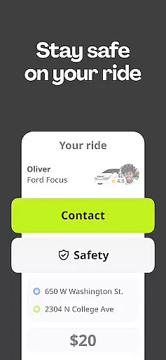 Safety and convenience are prioritized through several key functionalities. Users can review detailed driver information before confirming a ride, including vehicle details and trip history. During journeys, the 'Share Your Ride' feature enables real-time tracking by friends or family. Additionally, the app supports various service categories beyond basic ridesharing, including intercity travel, package delivery, and freight services, each tailored to specific customer needs.