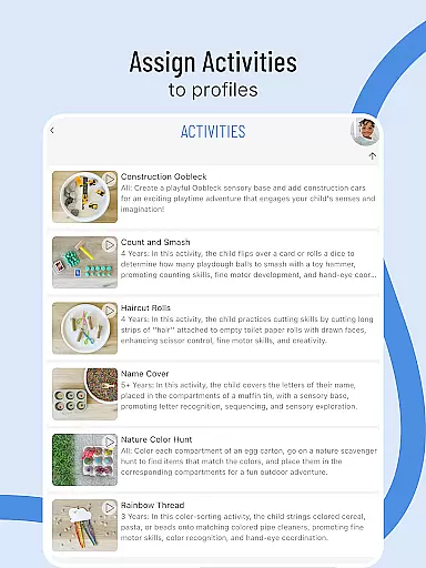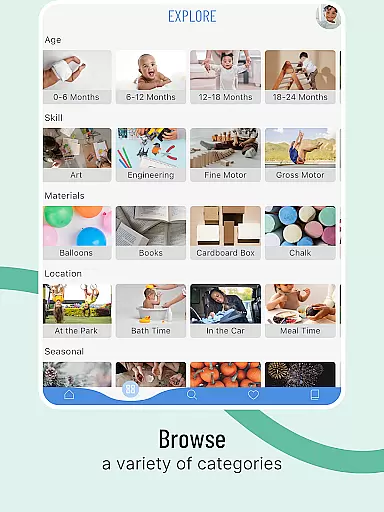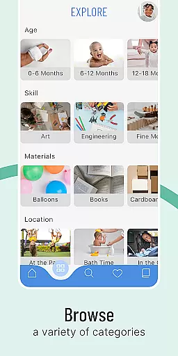 The app caters to children from infancy through school age, providing age-appropriate activities that foster growth, creativity, and connection. Users can explore learning content by age group and track their child's developmental progress. For those seeking more advanced tools, the premium subscription unlocks additional features such as individual child profiles, exclusive printables, personalized activity recommendations, and the ability to save favorite activities.