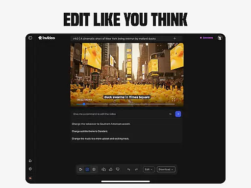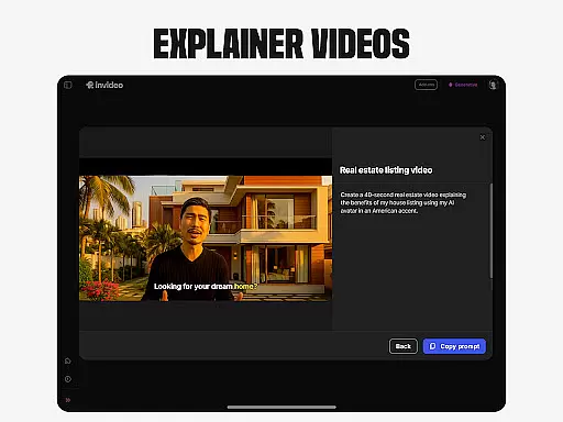 Invideo AI is a revolutionary video creation platform that empowers users to produce professional-quality videos without requiring technical expertise. The app offers an extensive suite of AI-powered tools for creating various types of video content, including explainers, advertisements, documentaries, and social media clips.