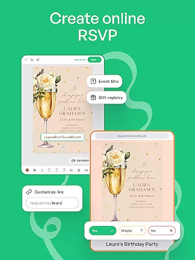 The app provides full customization options with professionally designed templates, allowing users to personalize every detail effortlessly. Its all-in-one nature enables creation of not just invitations but also RSVPs, save-the-dates, flyers, and more, making it indispensable for event planning.