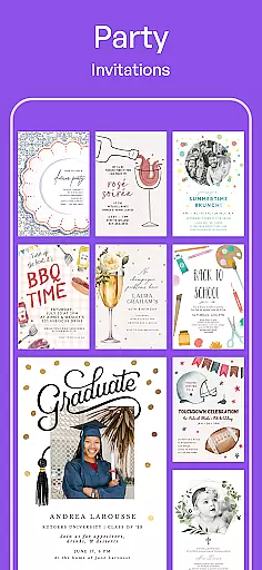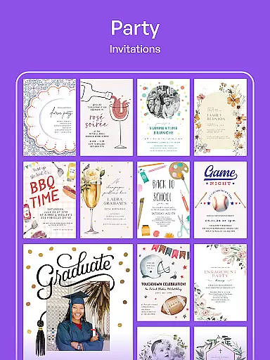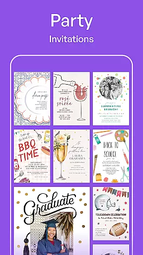 The app offers a wide range of professionally designed templates suitable for any occasion. Users can effortlessly choose a template that fits their event's theme and customize it by altering text, colors, and images. This level of personalization ensures that each invitation or card reflects the unique style and tone of the event.