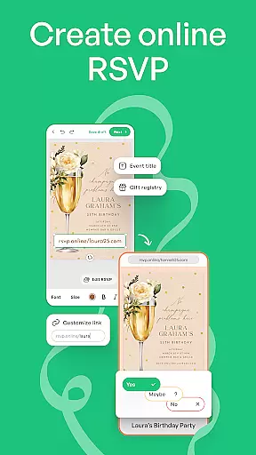 As an all-in-one platform, it supports the creation of multiple types of event materials such as party invitations, RSVPs, and greeting cards. Additionally, its focus on digital solutions means users can share their creations instantly via email or social media, promoting eco-friendly, paperless invites.