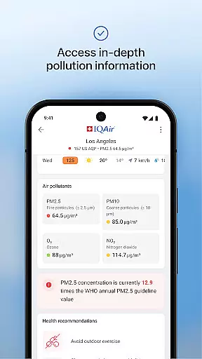 The app features an extensive range of functionalities including historical, real-time, and forecast air pollution data, 7-day air pollution and weather forecasts, 2D & 3D world pollution maps, and health recommendations tailored for sensitive groups. Additionally, it provides critical information on wildfires, pollen counts, and allows control of compatible air purifiers. Users can also synchronize with IQAir AirVisual Pro and Outdoor monitors for both indoor and outdoor air quality readings.
