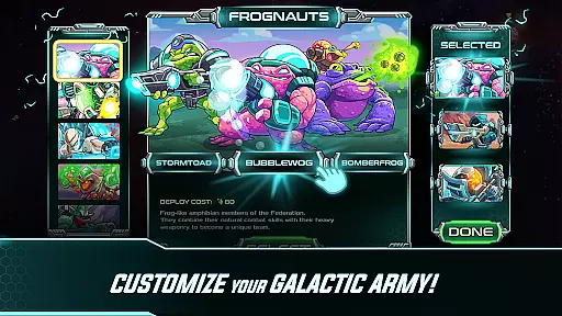 Players can select from 10 distinct unit groups, each containing three variations, resulting in 30 unique troop types. These units range from rangers to snipers, mechas, and alien warriors. Each type brings something different to the battlefield, requiring players to adjust their tactics accordingly.