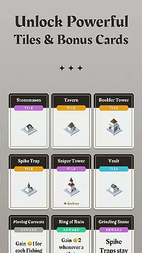 The true brilliance lies in how these elements interact. With over 70 distinct tiles, including towers, roads, flags, gardens, and taverns, players can devise intricate strategies that evolve as the isle grows. Each choice not only affects immediate defense capabilities but also influences future placement options and overall campaign progress.