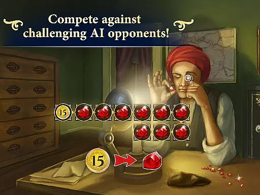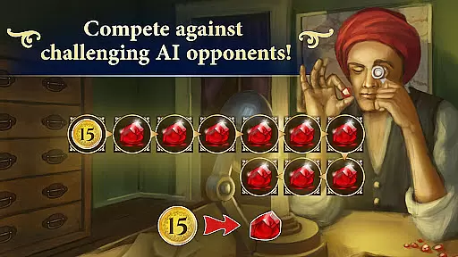 Istanbul: Digital Edition brings the acclaimed board game experience to your mobile device with perfect adaptation of its original rules and gameplay. As a merchant in the bustling bazaar, you must strategically move through 16 unique locations while managing your assistants and resources. The goal is to be the first to collect a set number of rubies by trading goods, acquiring special abilities, and outmaneuvering competitors.