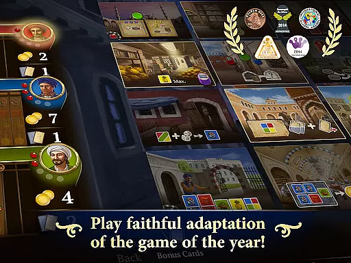 Unique tools enhance gameplay such as replaying opponents' last moves, generating random boards for variety, and offering accessibility options like colorblind mode. The app also supports over 70 achievements to unlock, beautiful artwork by Andreas Resch, and immersive sound design. With support for nine languages and seamless cross-platform play, Istanbul: Digital Edition ensures an unparalleled digital board gaming experience.