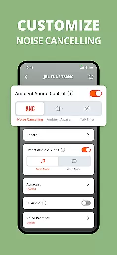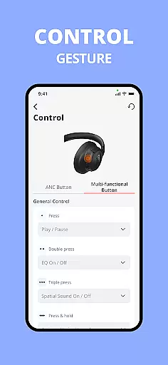 The app supports a wide range of JBL headphone models, providing predefined EQ presets and customizable settings. Users can adjust noise-canceling levels, configure touch gestures, and access product help and FAQs. The inclusion of a headphone battery indicator ensures you're always aware of your device's status. Whether you're commuting, working out, or relaxing at home, the JBL Headphones app enhances your audio experience while offering unprecedented control over your device settings.