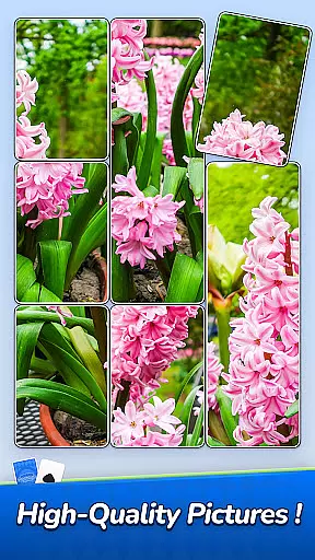 The game features a gallery of breathtaking HD jigsaw puzzles covering themes such as nature, art, and animals. These visually appealing puzzles provide a fresh take on the classic jigsaw experience, enhanced by the unique integration of solitaire-style card sliding. The satisfying snap and chain reactions when multiple cards connect add an extra layer of excitement and originality to the gameplay.
