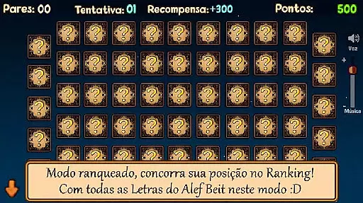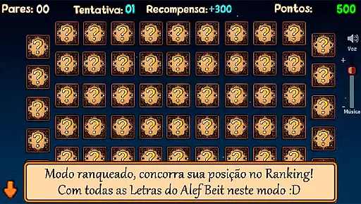 Jogo da Memória - Alef Beit is an educational memory game designed for users of all ages, with a focus on learning the Alef Beit alphabet. The app combines vibrant visuals and engaging gameplay to create an interactive learning experience.