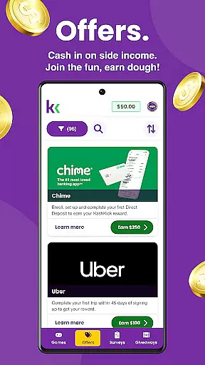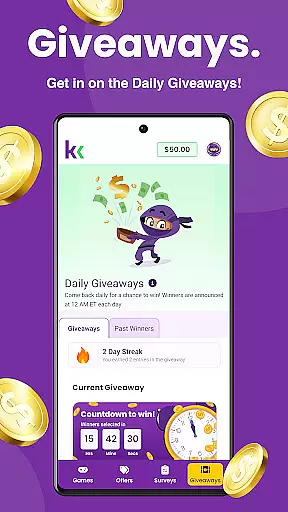 Beyond gaming, KashKick connects users with paid surveys and exclusive brand deals. Surveys provide a simple way to earn by sharing opinions, while brand deals allow users to save and grow their money through everyday shopping. The Daily Giveaway feature adds another layer of engagement, offering users the chance to win up to $100 just by logging in daily. These features collectively create a dynamic, rewarding experience that keeps users engaged and motivated.