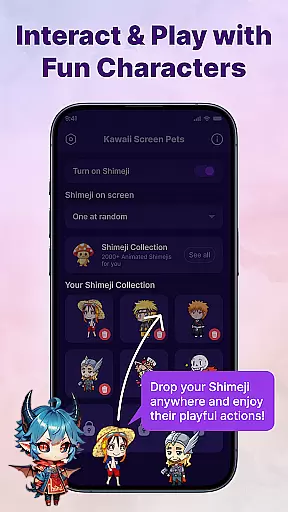 Kawaii Shimeji Screen Pet excels in theme compatibility, seamlessly integrating with various themes across your device. Whether you prefer anime-inspired aesthetics or meme-themed visuals, the app supports a diverse range of styles.