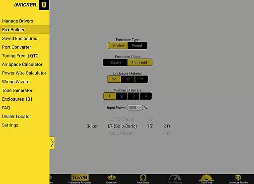 Kicker U stands out with its specialized set of features tailored for audio enclosure design. The app includes advanced calculators for determining port dimensions and tuning frequencies, which are crucial for achieving optimal sound quality. These tools help users fine-tune their audio systems based on specific requirements and environmental factors.