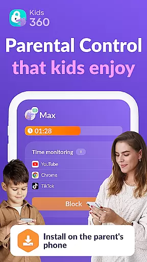 Kids360 is a comprehensive parental control app designed to help parents manage their children's device usage effectively. The app offers essential features like screen time management, app blocking, and GPS tracking, ensuring a safe digital environment for kids. With Kids360, parents can set specific time limits on apps and games, create usage schedules for school and sleep times, and monitor overall screen time.