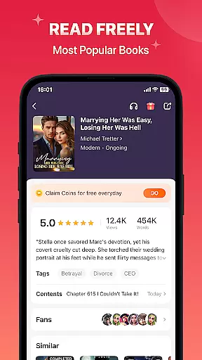 Another key feature is the ability to read online for free. Users can take advantage of free trial chapters, limited-time offers for entire books, and daily free coins to unlock additional content. This approach not only attracts new readers but also keeps them engaged over time. Additionally, Kifflire allows users to customize their reading experience by adjusting text size, font, color, and background settings, mimicking the feel of a real paper book.