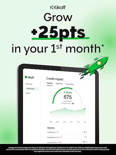 Kikoff is a financial application designed to help users build and improve their credit scores through smart, easy-to-manage plans. The app offers two subscription options: the Basic plan for $5/month and the Premium plan for $20/month. Each plan provides a credit line reported to major credit bureaus - Equifax, Experian, and TransUnion - helping establish a solid payment history with on-time payments. Kikoff's unique approach includes lowering credit utilization with tradelines of $750 or $2,500, allowing users to make purchases limited to Kikoff and pay back only what they spend.