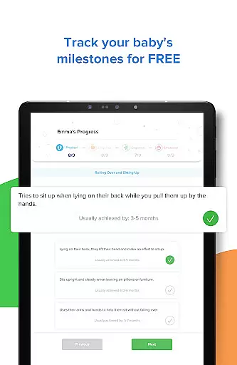Parents can easily monitor their baby's milestones through the Progress tab, where they will find comprehensive reports similar to those used by pediatricians. This allows for a clear understanding of how their child is developing across different areas such as motor skills, language acquisition, and social interactions.