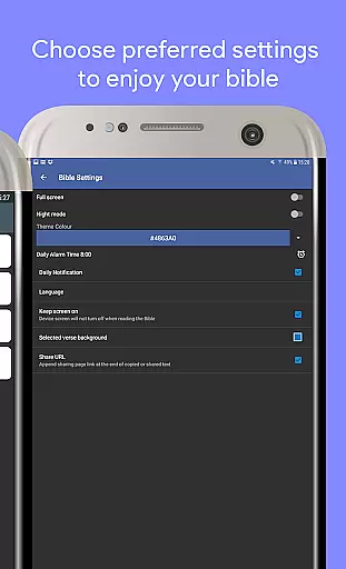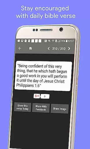 In addition to basic text display, the app offers additional functionalities such as daily Bible verses with notifications. These features are designed to work consistently regardless of the device format, providing users with inspirational content that can be easily shared on social media platforms like Twitter and Facebook.