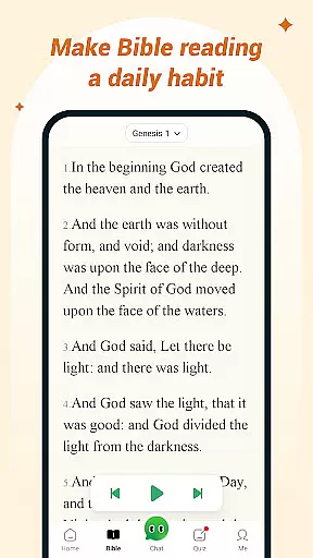 KJV Bible: Audio+Verse stands out with its rich feature set tailored for spiritual enrichment. At its core is the beloved King James Version text, known for its poetic language and theological depth. The app enhances this foundation with modern tools like AI Chat, which acts as a conversational guide for exploring faith-related questions through scriptural truth.