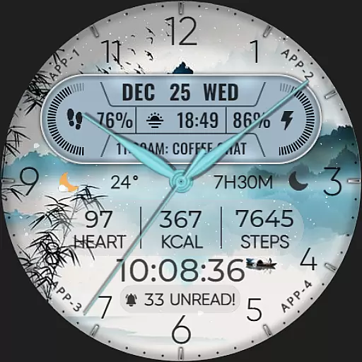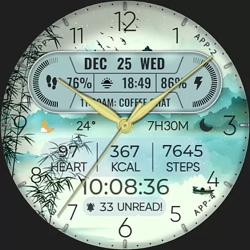 Functionality meets creativity with the inclusion of date, day of the week, and month displays. This watch face goes beyond mere aesthetics by providing practical information at a glance. Additionally, it boasts 8 editable complications, allowing users to tailor their watch face to display the data most important to them, such as steps count, heart rate, and battery level.