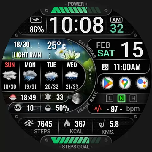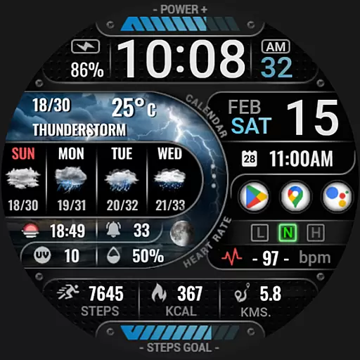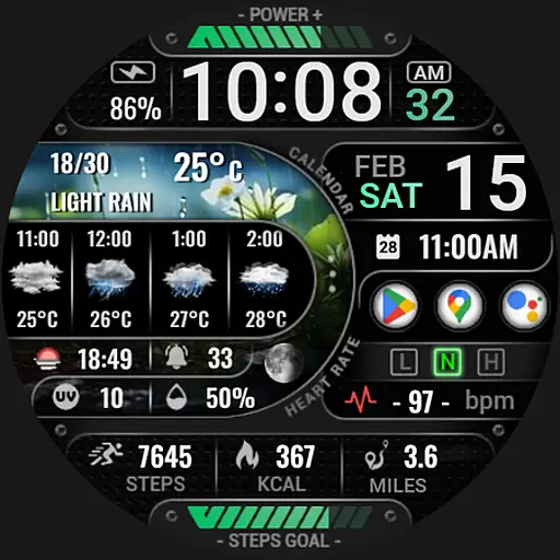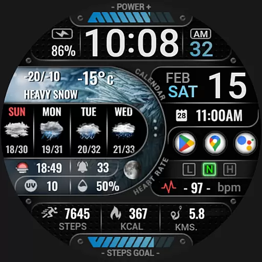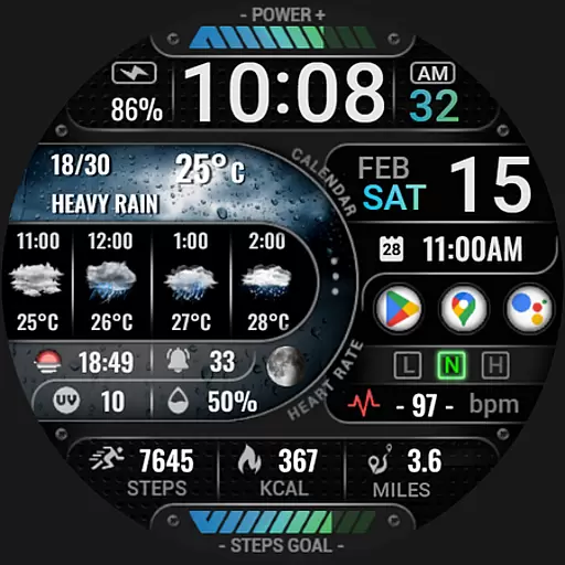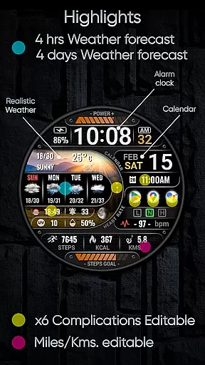 The watch face boasts an array of features including digital and analog styles, date and time display, realistic weather updates, health metrics like heart rate and step count, and much more. It's compatible with devices that have API level 34 and higher, ensuring a modern and smooth user experience on supported devices.