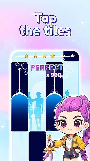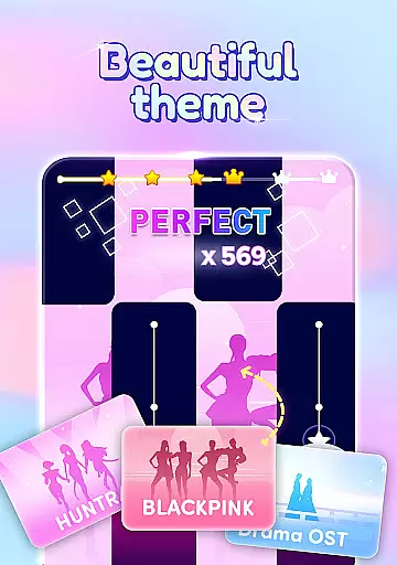 Kpop Piano Beats - Music Game is an engaging music rhythm game that allows players to immerse themselves in the world of Kpop. The core function of this app is to provide an interactive platform where users can tap, slide, and hold tiles in sync with the beat of popular Kpop songs from artists like Jung Kook, Black Pink, BTS, and more.