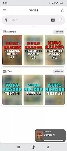 For those who prefer a secure and customized environment, Kuro Reader+ Pro offers fingerprint and screenshot locks on supported devices. Additionally, it includes advanced functionalities such as custom collections, comic tagging, bookmarks, favorites, and support for tables of contents. These features ensure users can manage their library efficiently while enjoying previews of all pages in their collection.